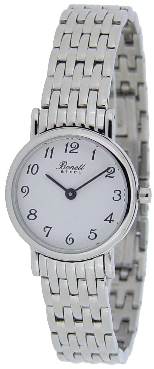 Bonett dameur stål hvit skive tall