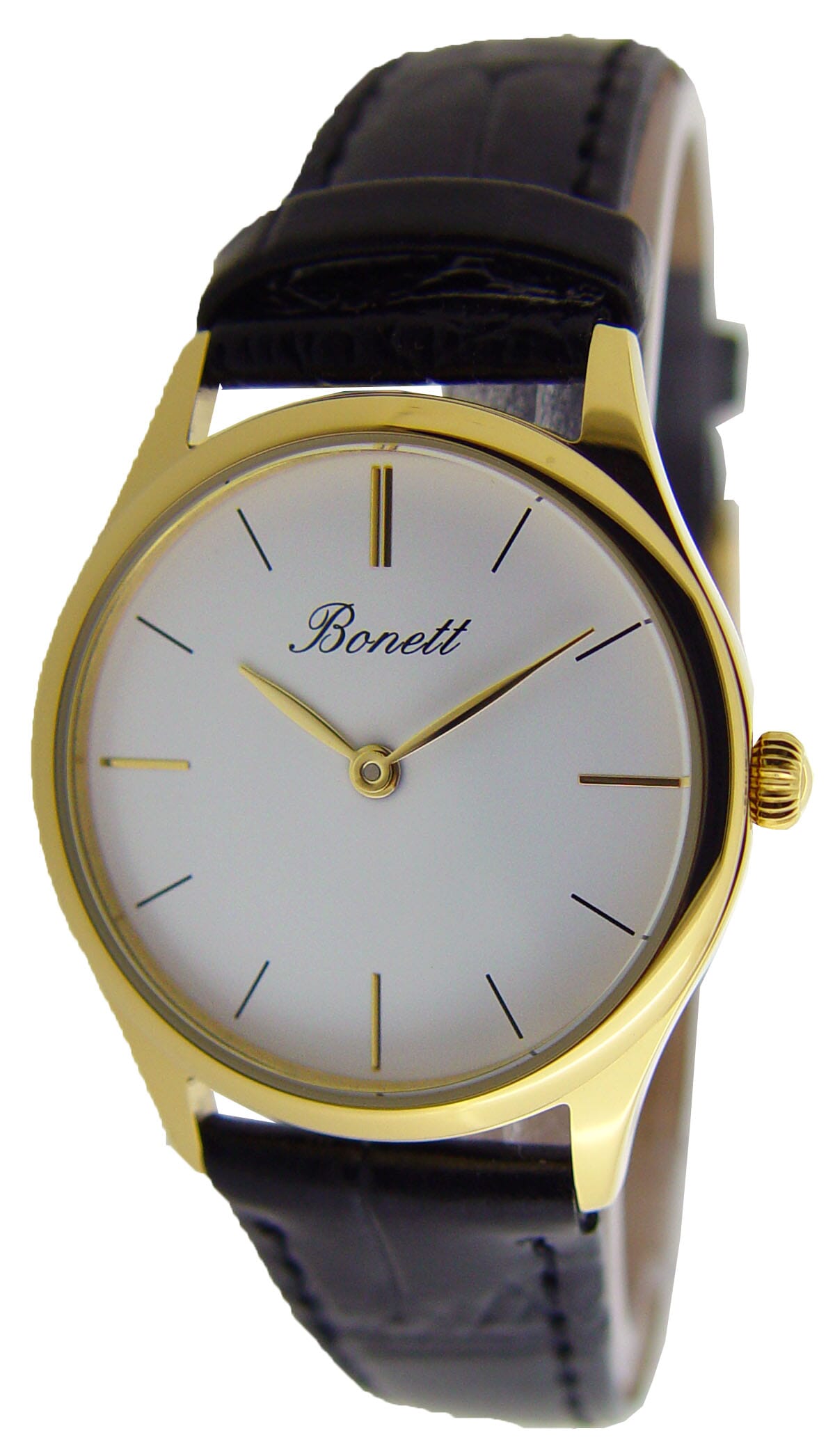Bonett herreklokke stål sort skive tall rem