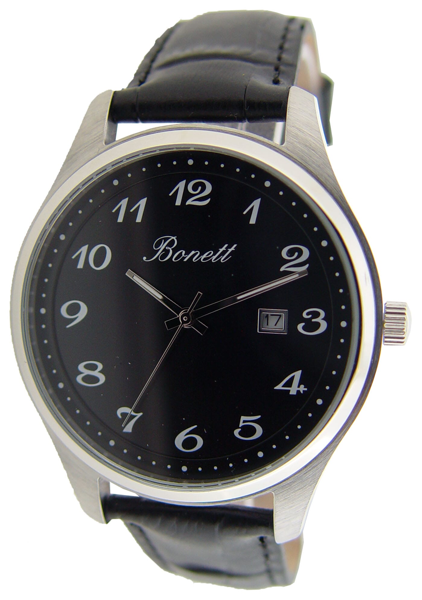 Bonett herreklokke stål sort skive tall rem